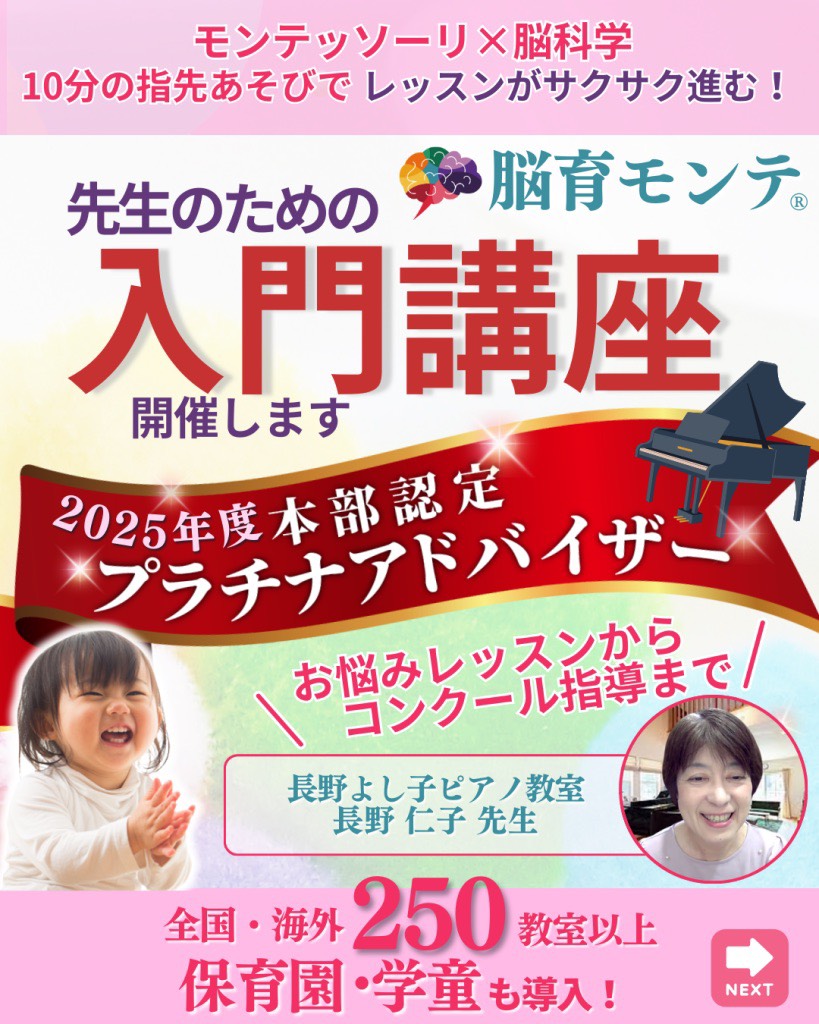 幼児の感性を育むプレ・ピアノコースから、趣味の大人レッスン、音大受験対策まで。“脳育モンテ®”を取り入れた最新のアプローチで、楽しく・着実に力を伸ばします。